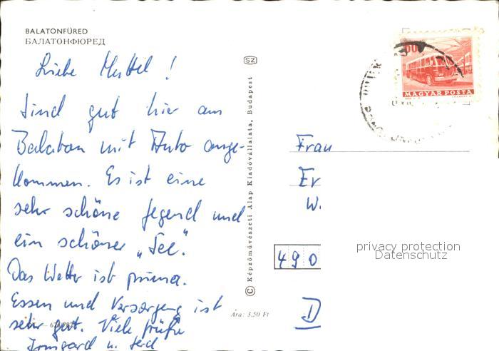 old postcard Balatonfuered Stadtansichten Denkmal postalisch gelaufen Erhaltung siehe scans
