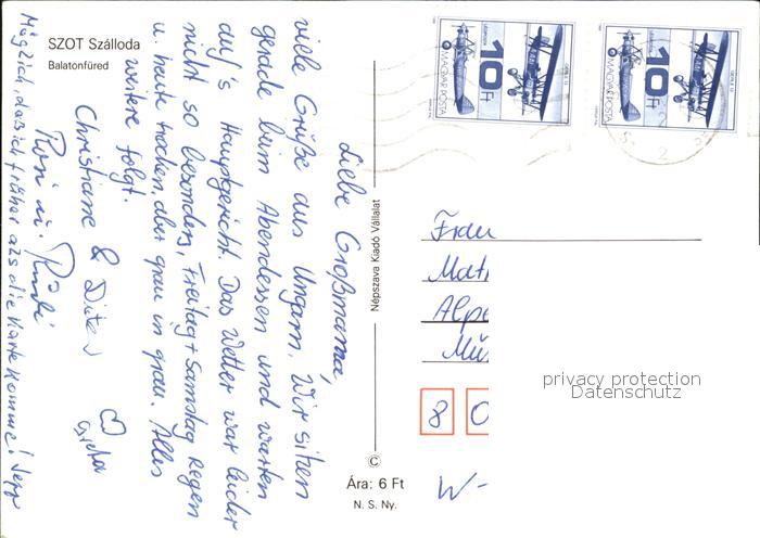 old postcard Balatonfuered Szot Szalloda postalisch gelaufen Erhaltung siehe scans [NatalD47 kv014box]