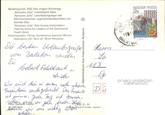 old postcard Balatongyoeroek Kommunistischen Jugendverbandkomites Komitat Zala postalisch gelaufen Erhaltung siehe scans