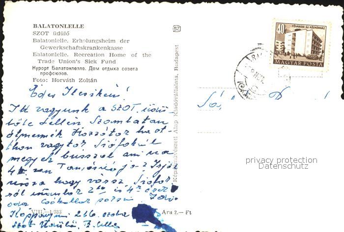 old postcard Balatonlelle Erholungsheim der Gewerkschaftskrankenkasse postalisch gelaufen Erhaltung siehe scans