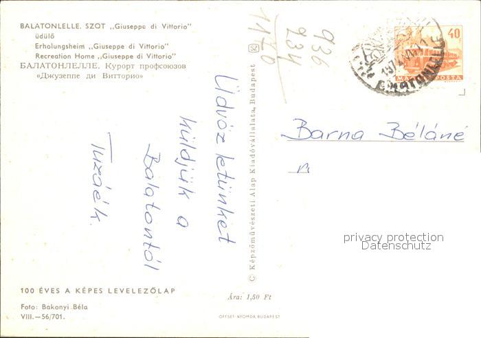 old postcard Balatonlelle Erholungsheim Giuseppe di Vittorio postalisch gelaufen Erhaltung siehe scans