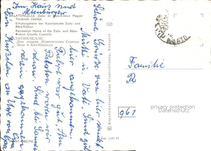 old postcard Balatonlelle Erholungsheim postalisch gelaufen Erhaltung siehe scans