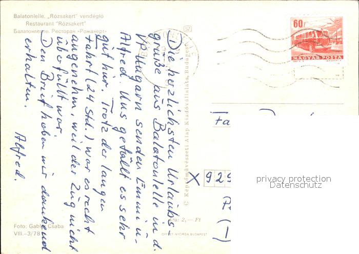old postcard Balatonlelle Restaurant Rozsakert postalisch gelaufen Erhaltung siehe scans
