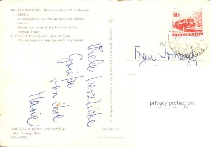 old postcard Balatonszabadi Erholungsheim des Ministeriums des Binnenhandels postalisch gelaufen Erhaltung siehe scans
