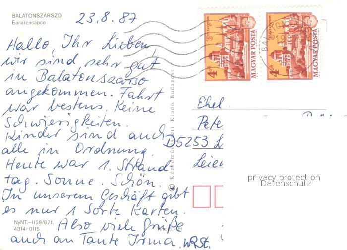 old postcard Balatonszarszo Denkmal Campingplatz Gaststaette postalisch gelaufen Erhaltung siehe scans [KathaD81]