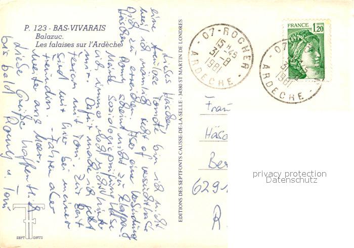 13152193 carte postale Balazuc Ardeche Schlucht Kirchenruine postalisch gelaufen Erhaltung siehe scans [KathaD81] KatCode: 11170007107023