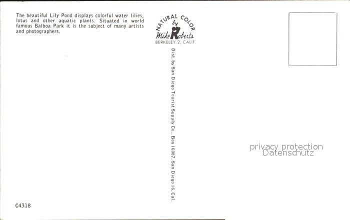 72461502 Balboa Lily Pond postalisch nicht gelaufen Erhaltung siehe scans KatCode: 14140050000000