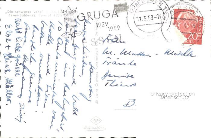 71933298 alte Postkarte Baldeneysee Die Schwarze Lene Restaurant postalisch gelaufen Erhaltung siehe scans KatCode: 11110005113000