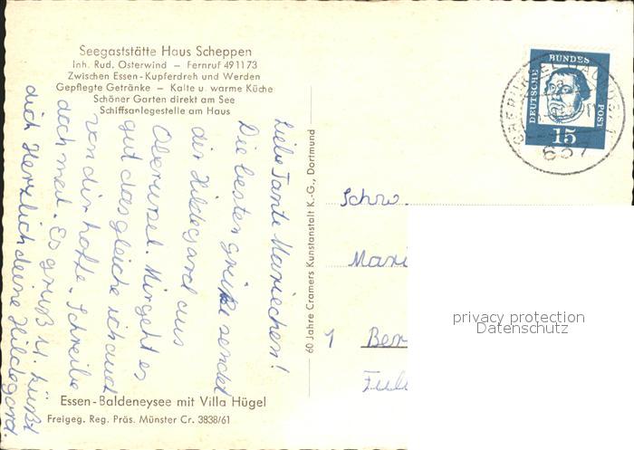 71909748 alte Postkarte Baldeneysee Villa Huegel postalisch gelaufen Erhaltung siehe scans KatCode: 11110005113000