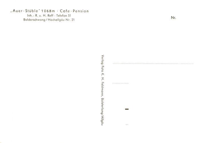 73891681 Balderschwang Auer Stueble Cafe Pension postalisch nicht gelaufen Erhaltung siehe scans [FriedD77] KatCode: 11110009780113