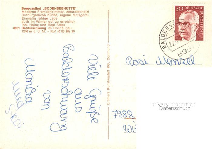 73123243 alte Postkarte Balderschwang Berggasthof Bodenseehuette postalisch gelaufen Erhaltung siehe scans [LiesaD40] KatCode: 11110009780113