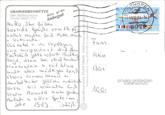 72067138 alte Postkarte Balderschwang Grasgehrenhuette Riedbergpass Gaststube Skikurs postalisch gelaufen Erhaltung siehe scans KatCode: 11110009780113