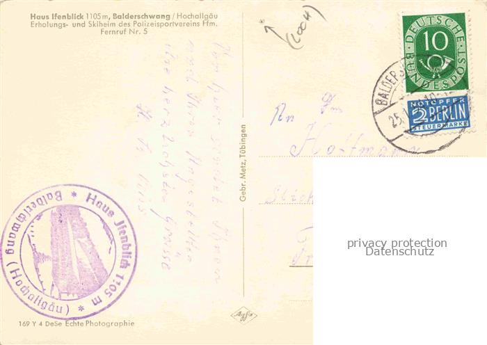 74044111 alte Postkarte Balderschwang Haus Ifenblick postalisch gelaufen Erhaltung siehe scans [WerneD78] KatCode: 11110009780113