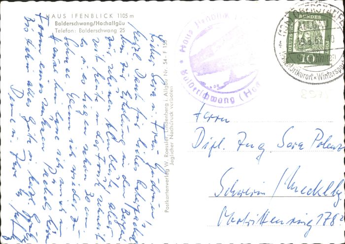 30726905 alte Postkarte Balderschwang Haus Ifenblick postalisch gelaufen KatCode: 11110009780113