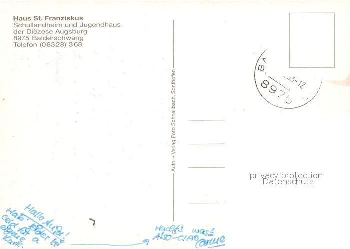 73803709 alte Postkarte Balderschwang Haus St Franziskus Gast und Aufenthaltsraeume postalisch gelaufen Erhaltung siehe scans [WerneD78] KatCode: 11110009780113