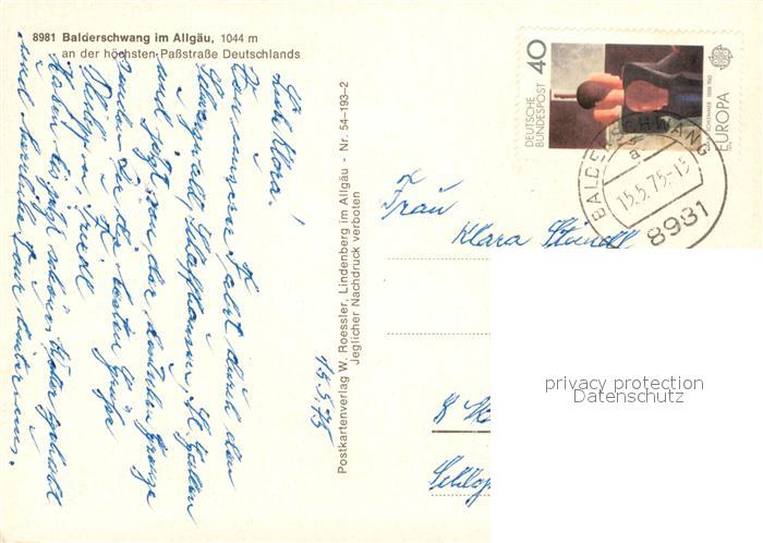 73143771 alte Postkarte Balderschwang Panorama Passstrasse Alpen postalisch gelaufen Erhaltung siehe scans [FriedD77] KatCode: 11110009780113