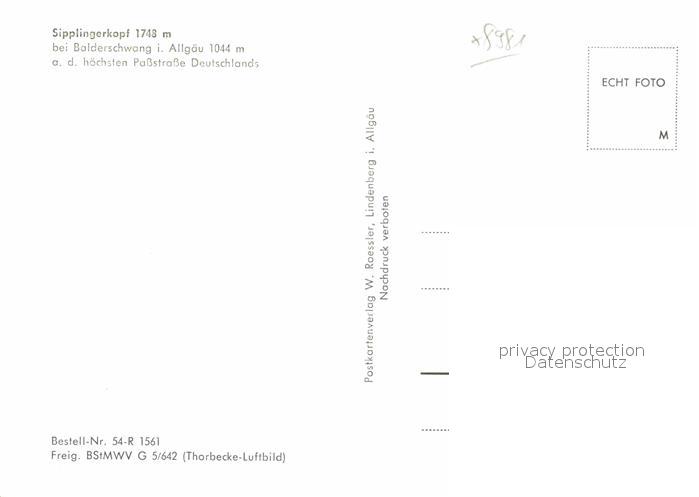 72796073 Balderschwang Sipplingerkopf postalisch nicht gelaufen Erhaltung siehe scans [AndreD76] KatCode: 11110009780113