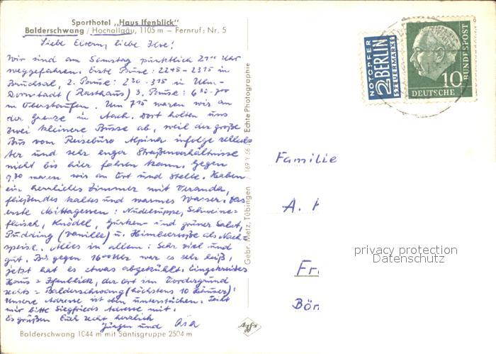 72104726 alte Postkarte Balderschwang Sporthotel Haus Ifenblick Panorama postalisch gelaufen Erhaltung siehe scans KatCode: 11110009780113