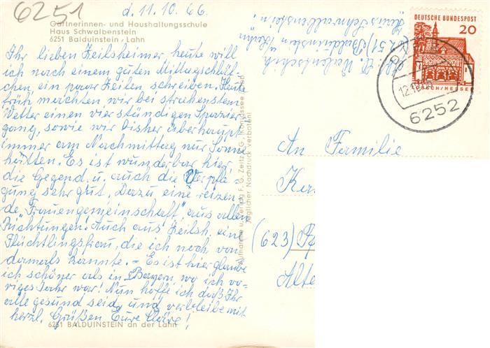 73936179 alte Postkarte Balduinstein Fliegeraufnahme Lahnpartie Haus Schwalbenstein postalisch gelaufen Erhaltung siehe scans [FriedD77] KatCode: 11110007141503