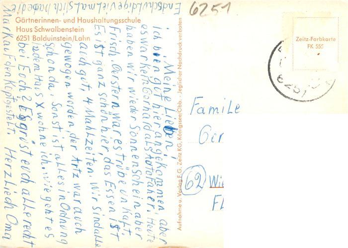 73936178 alte Postkarte Balduinstein Haus Schwalbenstein postalisch gelaufen Erhaltung siehe scans [FriedD77] KatCode: 11110007141503