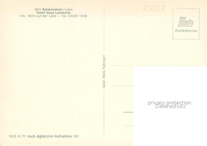 73724476 Balduinstein Hotel Haus Lahnblick postalisch nicht gelaufen Erhaltung siehe scans [WerneD78] KatCode: 11110007141503