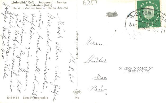 73706636 alte Postkarte Balduinstein Lahnblick Cafe Restaurant Panorama postalisch gelaufen Bahnpost Erhaltung siehe scans [WerneD78] KatCode: 11110007141503