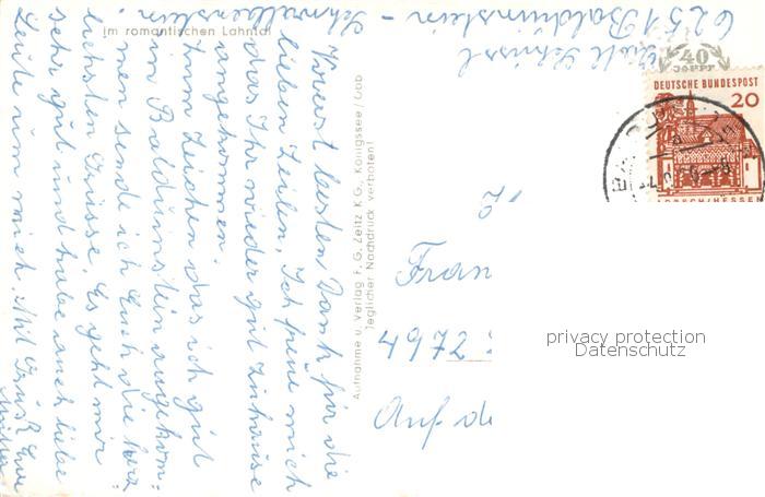 73762992 alte Postkarte Balduinstein Partie an der Lahn Blick zur Kirche Burgruine postalisch gelaufen Erhaltung siehe scans [FriedD77] KatCode: 11110007141503