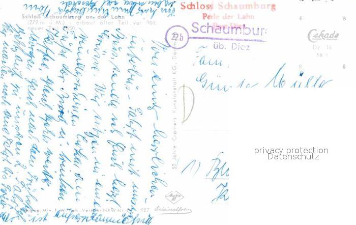 72812705 alte Postkarte Balduinstein Schloss Schaumburg Fliegeraufnahme postalisch gelaufen Erhaltung siehe scans [FriedD77] KatCode: 11110007141503