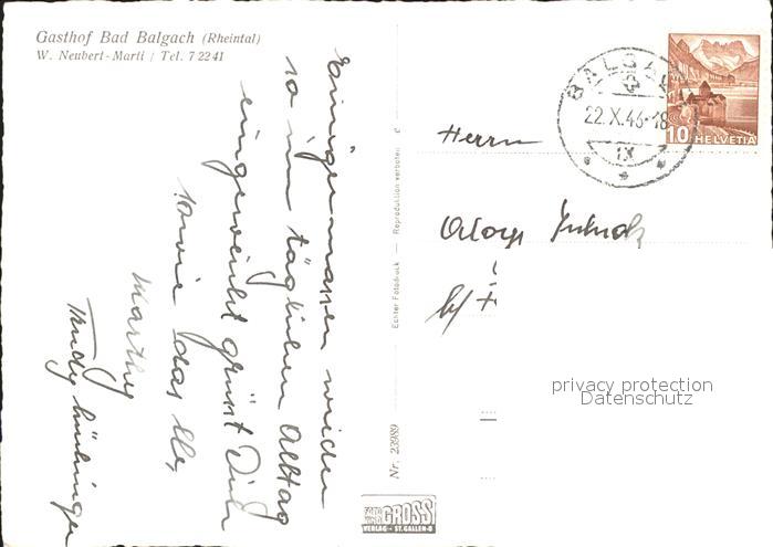 11646309 alte Postkarte Balgach Hotel Gasthof Bad Balgach postalisch gelaufen Erhaltung siehe scans KatCode: 11470190555564