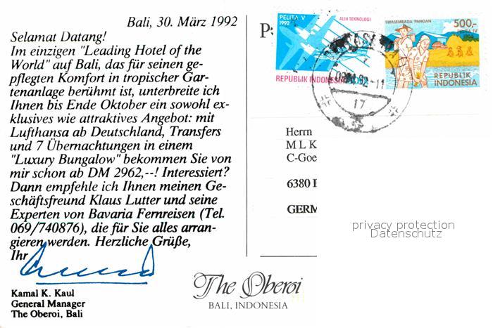 old postcard Bali Indonesien Ferienzentrum postalisch gelaufen Erhaltung siehe scans [AndreD76]