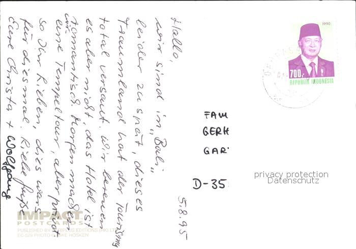 old postcard Bali Indonesien Rice terraces of Bali were carved from these volcanic hills centuries ago postalisch gelaufen Erhaltung siehe scans