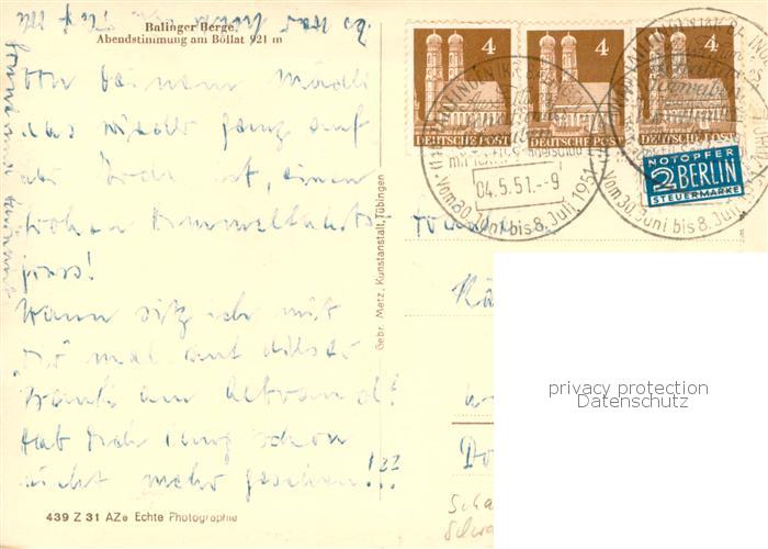 73776123 alte Postkarte Balingen Balinger Berge Abendstimmung am Boellat postalisch gelaufen Erhaltung siehe scans [WerneD78] KatCode: 11110008417002
