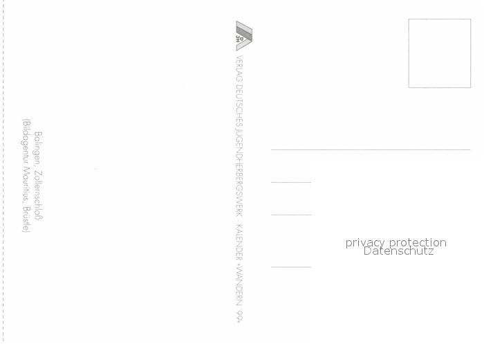 72696442 Balingen Zollernschloss Wasserschloss Wehr Kalender Wandern 1999 postalisch nicht gelaufen Erhaltung siehe scans [FriedD77] KatCode: 11110008417002