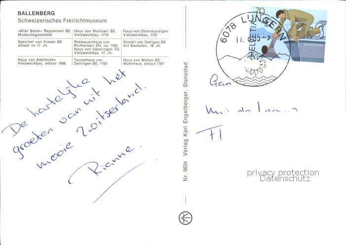 72605800 alte Postkarte Ballenberg Odenwald Schweizerisches Freilichtmuseum postalisch gelaufen Erhaltung siehe scans [AndreD76] KatCode: 11110008225114