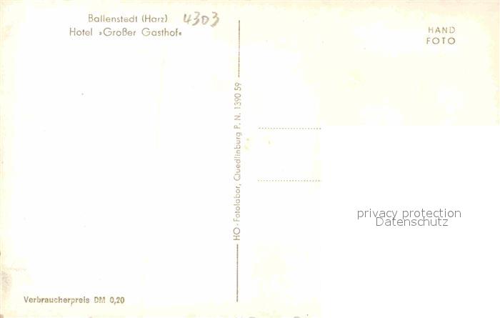 72678770 Ballenstedt Hotel Grosser Gasthof postalisch nicht gelaufen Erhaltung siehe scans [LiesaD40] KatCode: 11110015085040