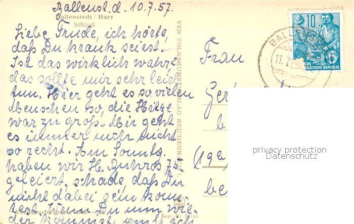 73028015 alte Postkarte Ballenstedt Schloss postalisch gelaufen Erhaltung siehe scans [WerneD78] KatCode: 11110015085040