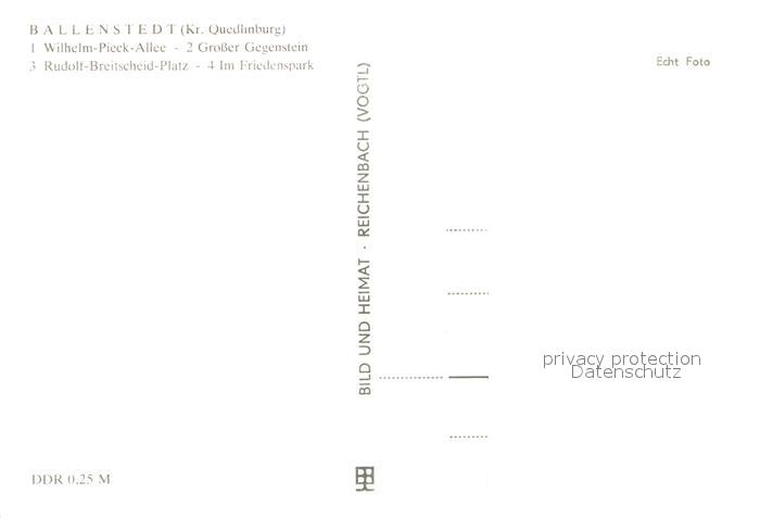 72973898 Ballenstedt Wilhelm Pieck Allee Grosser Gegenstein Rudolf Breitscheid Platz Friedenspark postalisch nicht gelaufen Erhaltung siehe scans [FriedD77] KatCode: 11110015085040