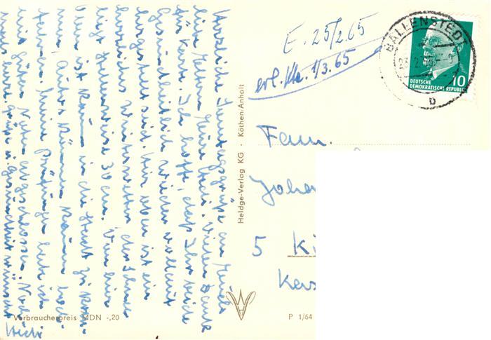 73864270 alte Postkarte Ballenstedt Wilhelm-Pieck-Allee postalisch gelaufen Erhaltung siehe scans [FriedD77] KatCode: 11110015085040
