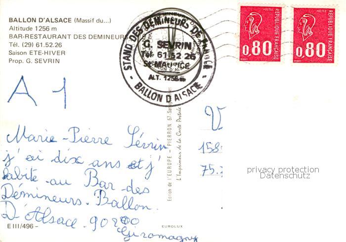 13826377 Ballon d Alsace Bar Restaurant des Demineurs postalisch gelaufen Erhaltung siehe scans [FriedD77] carte postale Frie Katcode 11170068668307