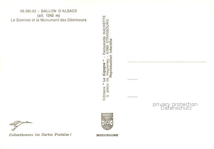 13598202 Ballon d Alsace Le Sommet et Monument des Démineurs vue aérienne postalisch nicht gelaufen Erhaltung siehe scans [FriedD77] Frie Katcode 11170068668307