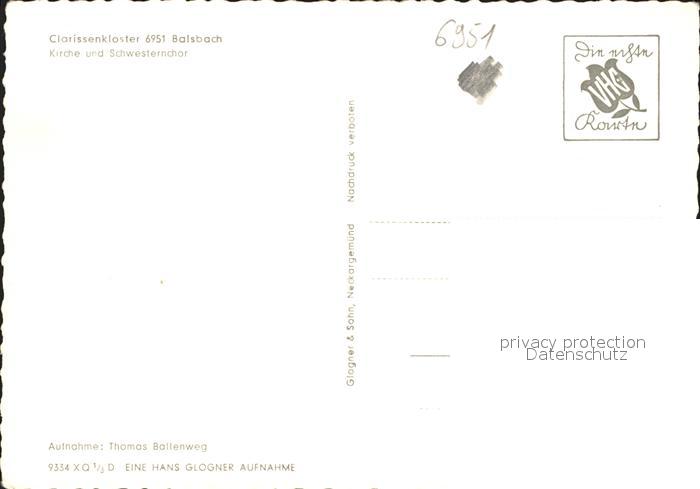72098080 Balsbach Clarissenkloster postalisch nicht gelaufen Erhaltung siehe scans KatCode: 11110008225052