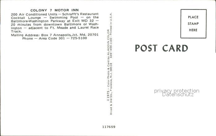 72167459 Baltimore Maryland Colony 7 Motor Inn Swimmingpool Gastraum postalisch nicht gelaufen Erhaltung siehe scans KatCode: 14140220000000