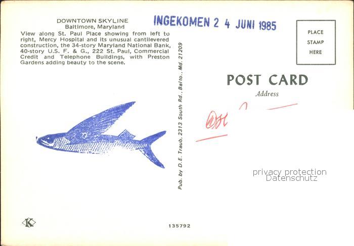 72270723 Baltimore Maryland Downtown Skyline postalisch nicht gelaufen Erhaltung siehe scans KatCode: 14140220000000