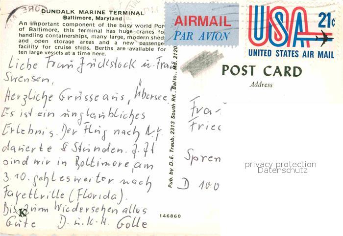 72854810 old postcard Baltimore Maryland Dundalk Marine Terminal postalisch gelaufen Erhaltung siehe scans [AndreD76] KatCode: 14140220000000