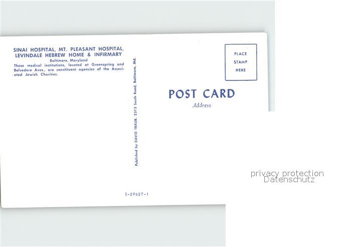 72013624 Baltimore Maryland Sianai Hospital Mt Pleasant Hospital postalisch nicht gelaufen Erhaltung siehe scans KatCode: 14140220000000