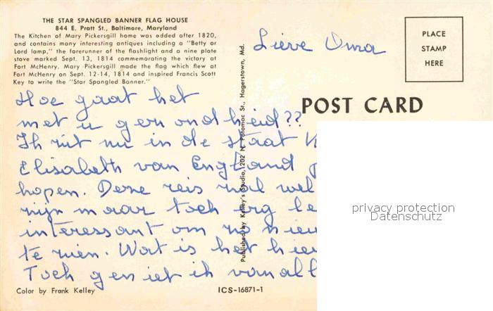 72891724 Baltimore Maryland Star Spangled Banner Flag House postalisch nicht gelaufen Erhaltung siehe scans [LiesaD40] KatCode: 14140220000000