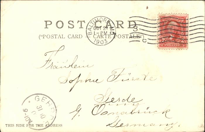11094239 old postcard Baltimore Maryland Strassenbahn postalisch gelaufen KatCode: 14140220000000