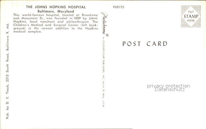 72132663 Baltimore Maryland The Johns Hopkins Hospital postalisch nicht gelaufen Erhaltung siehe scans KatCode: 14140220000000