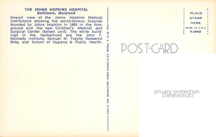 72996151 Baltimore Maryland The Johns Hopkins Hospital postalisch nicht gelaufen Erhaltung siehe scans [WerneD78] KatCode: 14140220000000