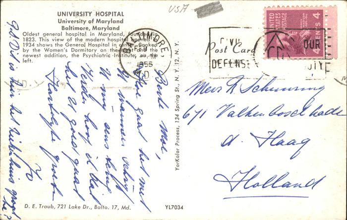 11491331 old postcard Baltimore Maryland University Hospital University of Maryland postalisch gelaufen Erhaltung siehe scans KatCode: 14140220000000
